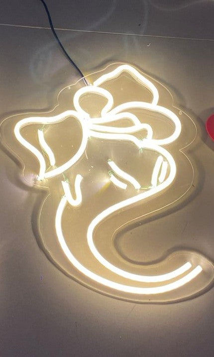 LED Neon Ganesh Wall Sign, Decorative Light Art, White( 12 by 12 inches)