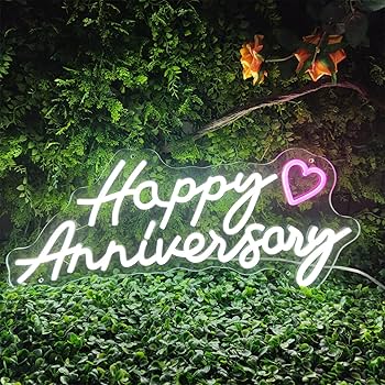 LED Neon Happy Anniversary Sign with Heart Design, 30.5 x 61 cm, Wall Mounted Decorative Light