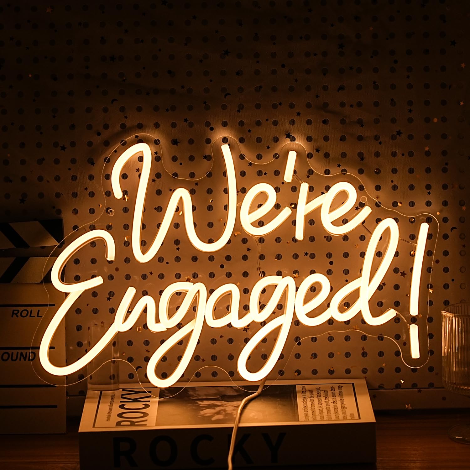 *DESIGN FEATURES* : Eye-catching orange neon LED text displaying 'We're engaged' in elegant cursive script