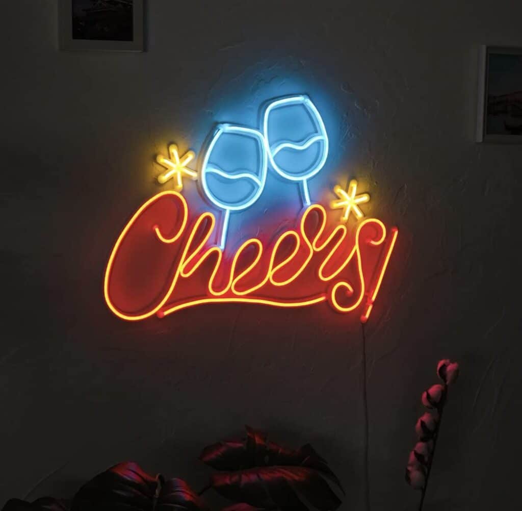 LED Neon Sign, Wine Glass Cheers Design, Bar Wall Decor,Ice Blue and Red(30cms by 60cms)