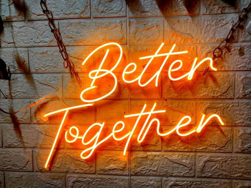 Neon Sign Board, Better Together, 12 x 24 inches (Orange)