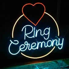 Ring Ceremony Neon Sign Board, Heart Design, Blue and Orange, 18 x 18 inches