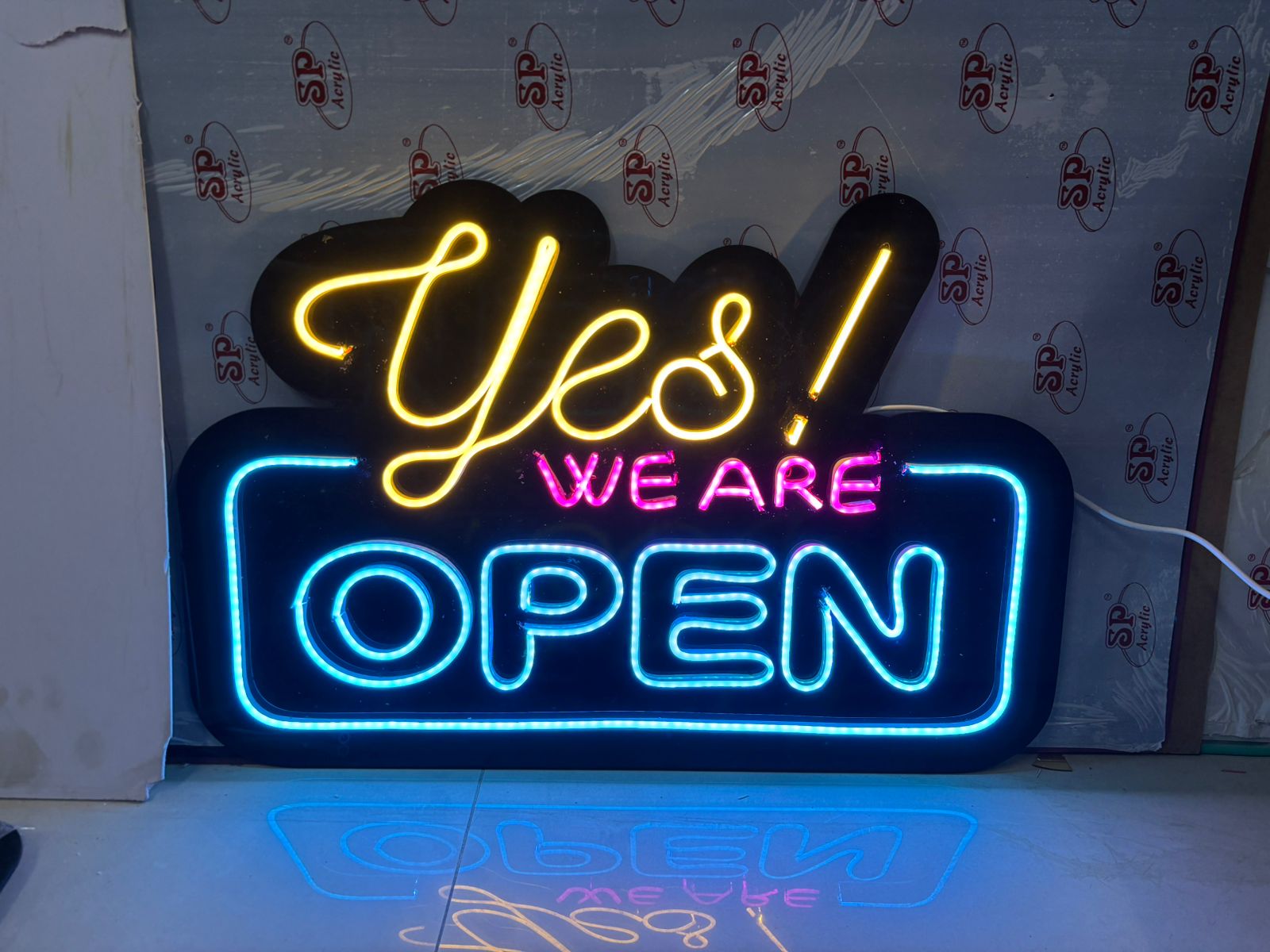 Yes we are open neon board in black acrylic sheet (12 inches by 24 inches)
